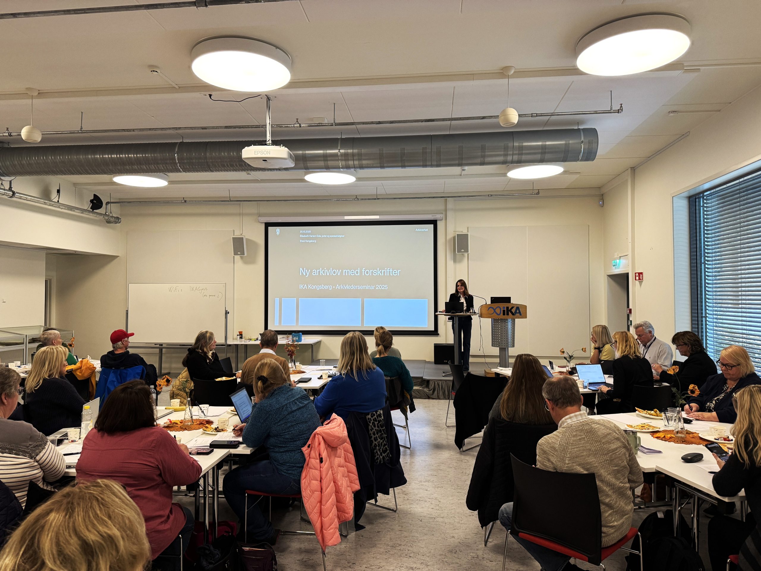 Rundt 50 arkivledere og arkivansatte fra IKA Kongsbergs eierkommuner deltok fysisk på årets arkivlederseminar 20.–21. oktober, og i tillegg fulgte noen deltakere programmet digitalt via Teams. Temaet for årets samling var Arkiv – lov, teknologi og krisetid, med fokus på hvordan vi ruster arkivene for fremtiden – juridisk, teknologisk og beredskapsmessig.